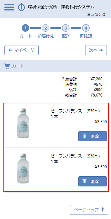 スマホサイトで商品詳細ページで買い物かごに商品を追加後、